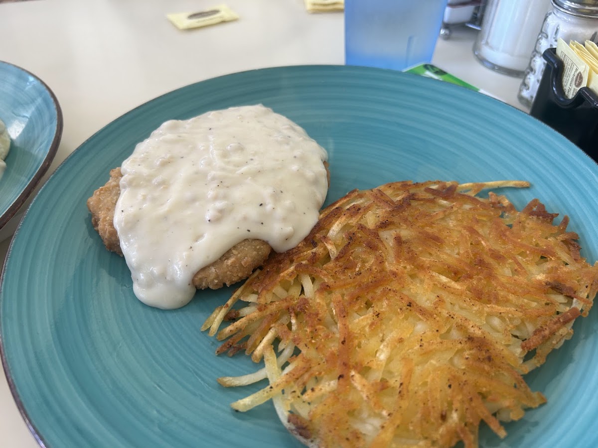 The menu focuses on classic breakfast staples, notably generous portions that clearly prioritize value. You’ll find hearty options such as the chicken fried steak skillet, with large servings of eggs, potatoes, and famously rich country gravy, alongside favorites like pancakes, strawberry waffles, and corned beef hash. Those who prefer something lighter can opt for oatmeal or fresh fruit with toast, though most visitors tend to go for the more filling skillet plates or breakfast scrambles if they’re coming in hungry.