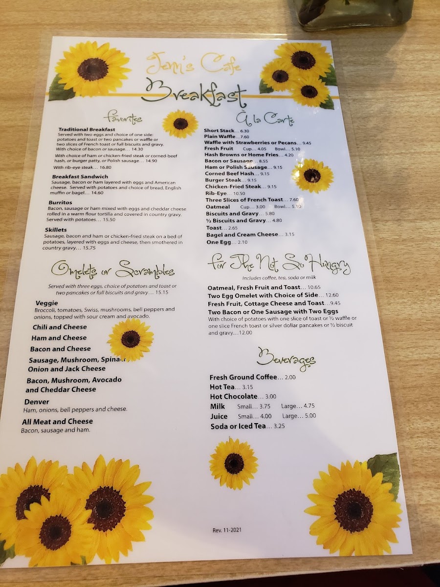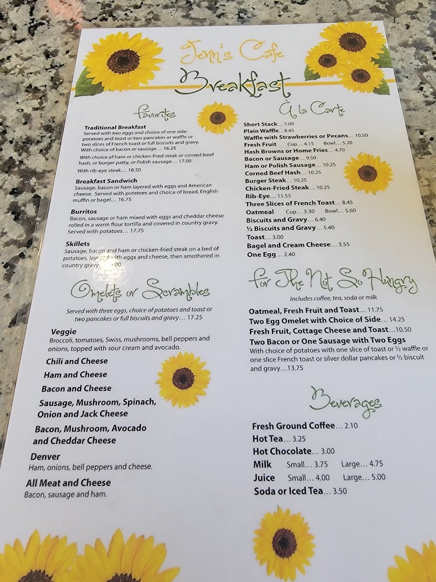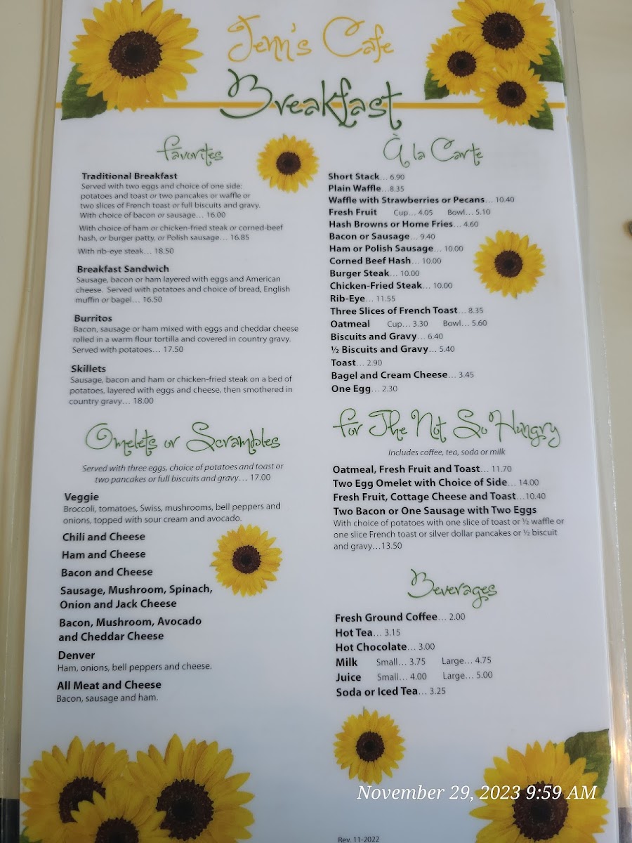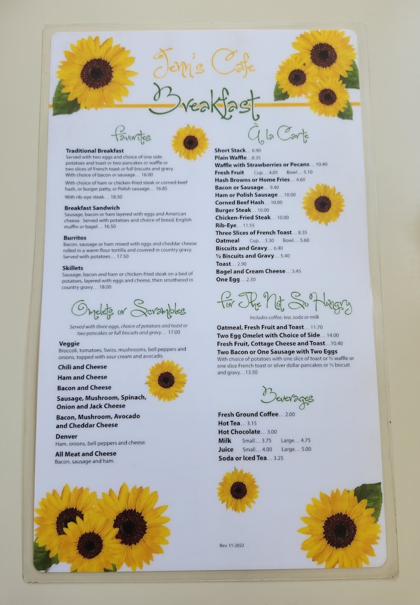 Jenn's Café Menu